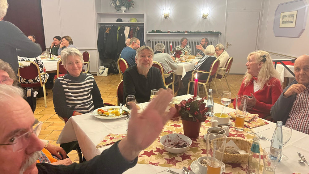 Nachdem die Weihnachtsfeier 2023 wegen vieler Krankheitsfälle ins neue Jahr verschoben werden musste und dieses bei den Teilnehmern auf positive Resonanz stieß, entschied sich der Festausschuss um Jana und Silke in Abstimmung mit dem Liedertafel-Vorstand von vornherein, auf eine Weihnachtsfeier im oftmals mit Terminen überfluteten Dezember zu verzichten und statt dessen ein Neujahrsessen zu organisieren. Die zu Jahresbeginn verschickte Einladung stieß bei vielen aktiven und passiven Vereinsmitgliedern auf positive Resonanz. So ging es dann am 21. Februar - meist per Fahrgemeinschaft - zum Gasthof Basedau in Lütau. Schon im Vorwege durfte man aus einem Angebot von 4 Gerichten, vom fleischlastigen Senatorenteller über Hamburger Pannfisch bis zur vegetrischen Tagliatelle, wählen. Die Küche hatte sich auf den zu erwartenden Ansturm gut vorbereitet, so dass nach dem vom Festausschuss spendierten Aperitif auch zügig serviert wurde. Für die Schleckermäuler, die auch eine Nachspeise geordert hatten, gab es abschließend auch noch eine leckere ´Überraschung im Weckglas´. (ts) |